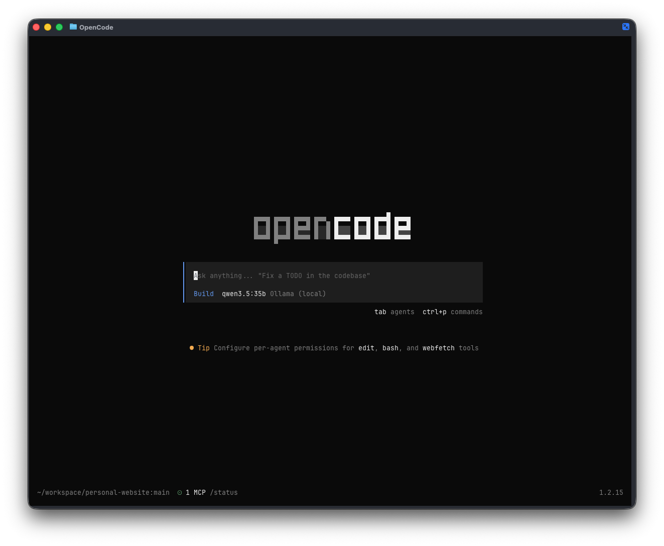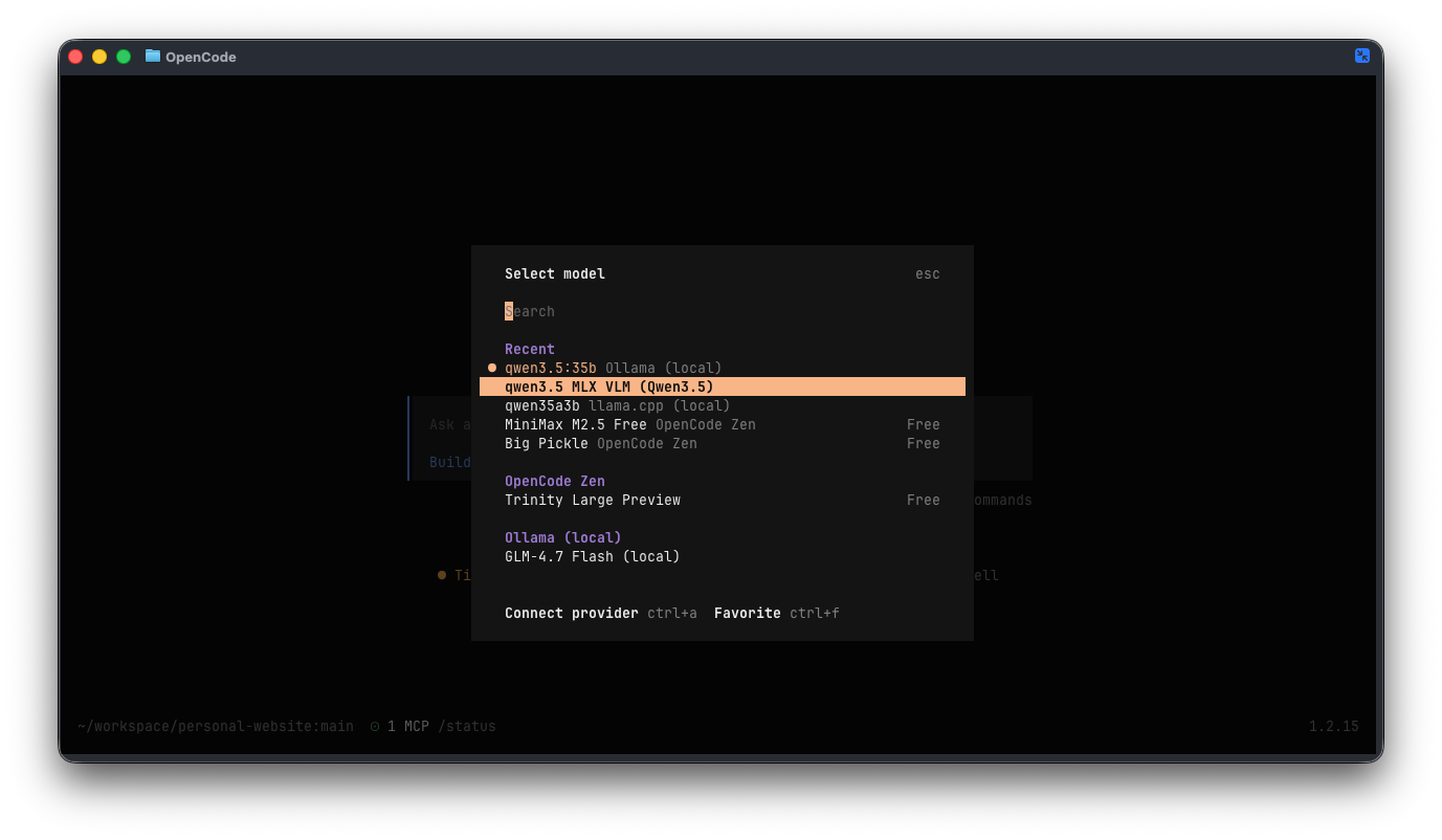 This will modify your configuration, and then launch opencode with Qwen3.5 selected as the model.